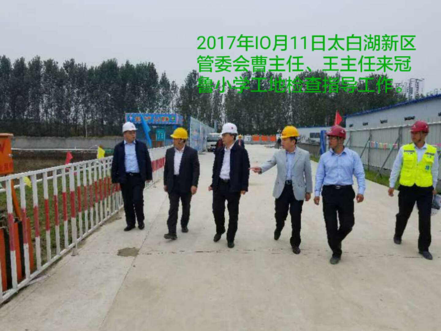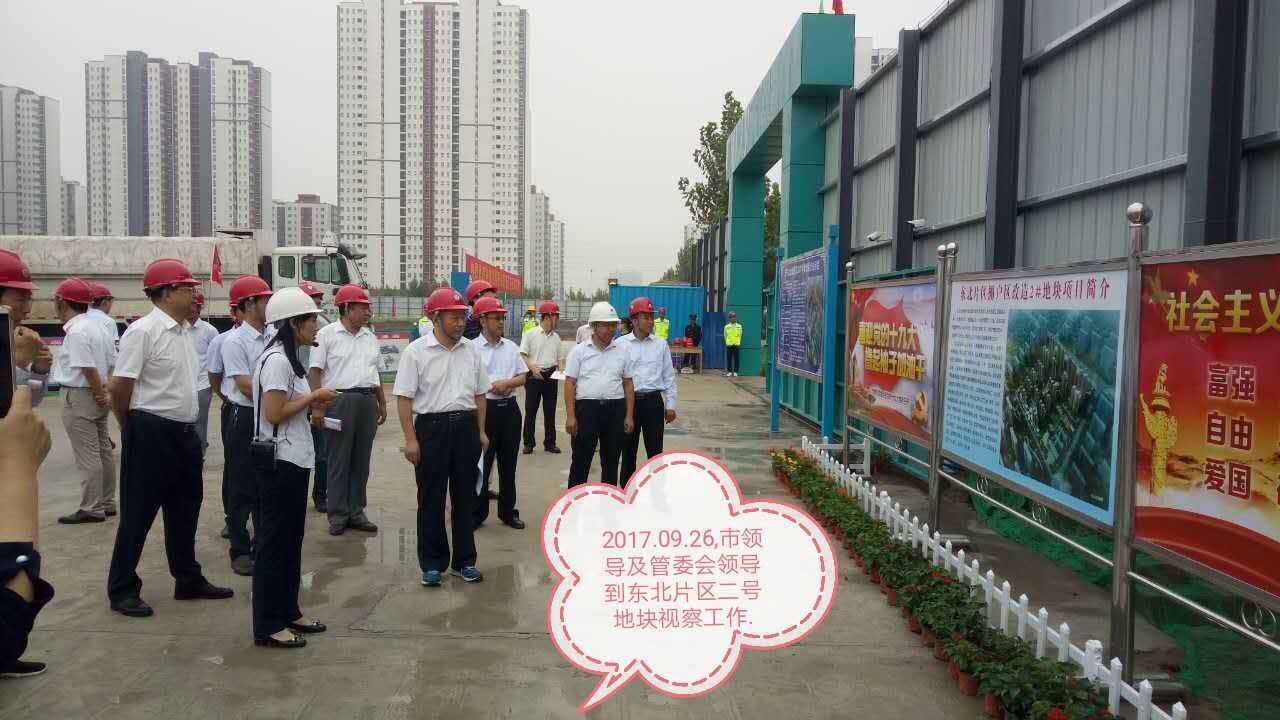 2017年9月至10月期间,市领导、太白湖区管委会领导及北湖建设集团一行陆续到济宁北湖度假区东北片区棚户区改造2#地块项目部、冠鲁小学项目部检查指导工作,并现场查看假期安全生产、扬尘治理及工程进展情况,对两个项目部工作给予了高度评价及肯定,并提出了新的指导意见。